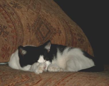 Was als Versehen begann, hatte nur gute Seiten (es gibt keine Zufälle), denn Elli war die erste der Fünferbande, die sich anfassen ließ. Aus dem ehemaligen Scheufellchen ist eine kleine selbstbewußte Schmusekatze geworden, die es lediglich immer noch nicht mag, wenn man ihr über das etwas flache Gesicht streicht. |