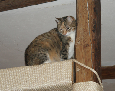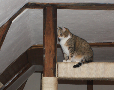 una, so der Name des Not-Fellchens, war wirklich extrem menschenscheu. Die erste Woche spielte sie Gespensterkatze, selten zu hören und noch seltener zu sehen. Aber ganz allmählich tastete sie sich auch zum Futter vor, wenn noch ein Mensch im Raum war und so waren wir voller Hoffnung, daß sie das offensichtlich erlittene Trauma irgendwann überwinden würde. Und wenn nicht, auch nicht so schlimm - dachten wir. Bis uns auffiel, daß sie wenig bis garnicht mehr fraß, dauerte ein paar Tage. Dann haben wir es mit allen möglichen Leckereien versucht - erfolglos. Und dann setzte massive Sorge ein... Wahrscheinlich war sie krank, aber wie kriegt man eine Gespensterkatze vom Heuboden zum Tierarzt? Erste Idee war natürlich Katzenfalle, nur - wenn sie nicht frißt, warum sollte sie in die Falle gehen? Plan B war Betäubung mit dem Blasrohr. Es brauchte Stunden und unzählige Telefonate, bis wir einen Tierarzt fanden, der 1. einen Blasrohrschein inklusive Blasrohr hat 2. sich mit der Dosierung für Kleintiere auskennt 3. willens ist, etliche Kilometer zu einem Nicht-Stammkunden zu fahren Wir fanden ihn. Und auch, wenn er das Risiko als sehr hoch einstufte, das die Katze die Betäubung nicht überlebt - besser so als irgendwann im Heu verrecken. |