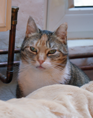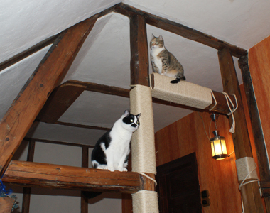 erade hatten sich die ersten fünf Scheu-Fellchen halbwegs in Wuzgarden eingewöhnt, erreichte uns ein Anruf vom Tierheim: Man wolle nur mal hören, wie es denn so geht und "zufällig" kam man im Laufe des Gesprächs auf ein Notfell in Form einer dreifarbigen Tigerkatze... Frau B., können Sie nicht noch... Erste Antwort von mir war ein entschiedenes "Nein", waren wir mit gesamt sieben Fellnasen doch gut belegt. Aber wie das so ist, wenn man sich mit dem Katzenelend näher befaßt: Wenn es irgendwie geht, tut man was. Und so standen die nächsten beiden Fellnasen quasi vor dem Tor und wurden reingelassen. Ähhhm - die nächsten beiden? Nun ja, sollte eine Katze allein in die "Zwischenquarantäne" auf den Boden? Und wie GG so treffend kommentierte - auf zwei Schälchen mehr kommt es nun auch nicht mehr an. Es wurde aber bei dieser Gelegenheit "Neun" als unumstößliche Obergrenze festgelegt. Und so kamen Luna und Gina ist Haus...