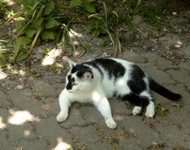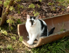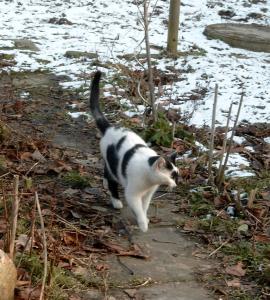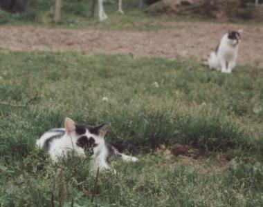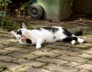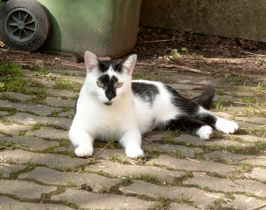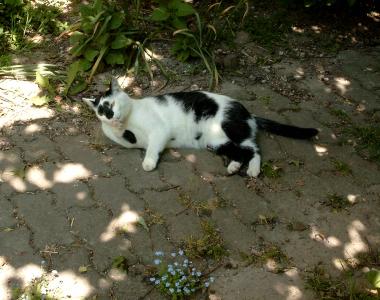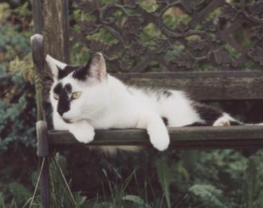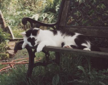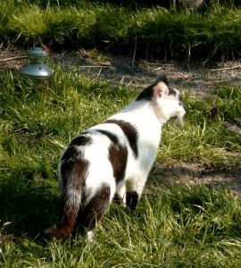 Warm, trocken und satt entpuppte sich der Tinker als weiß-schwarz und etwas verhaltensgestört. Irgendwie scheint er der indischen Religion zugetan und betrachtet sich als Wiedergeburt eines Terriers. Menschenbeine werden von hinten angefallen und gebissen, fremde Katzen verjagt und auch Line war nicht sicher vor seinen Überfällen. Ihre Rache war allerdings recht überlegt: Wollte Tinker durch die Katzenklappe ins Haus, konnte es ihm passieren, daß er die Klappe mit wohl berechnetem Schwung gegen die Nase bekam....