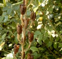 Zerberus, andere Quellen geben ihn als heilige Pflanze der Hekate an. Inwieweit Aconitum mit der in alten Texten zu findenden Bezeichnung Aconiton übereinstimmt, ist nicht sicher belegt. Der Hauptwirkstoff, das Akonitin, wirkt zunächst erregend, führt dann aber zu Herzrhytmusstörungen und zum Tod durch Atemlähmung. Das machte die Pflanze schon in der Antike zu dem Mittel der Wahl bei Giftmorden, wie Kaiser Claudius 54 n.Chr. am eigenen Leib erfahren mußte. Bei empfindlichen Menschen kann schon das Berühren der Blätter unangenehme Folgen haben, obwohl die Hauptkonzentration des Giftes in der Wurzel und in den Samen liegt. Das Erzeugen von Kribbelgefühlen auf der Haut und Halluzinationen empfahl die Pflanze als Zutat für Flugsalben und lykantrophische Verwandlungszauber im Mittelalter. |