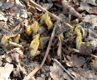 A b Februar schon kommen die Spitzen der Staude aus der Erde, bei der Variation "Alba" in hellgrün, bei der rosanen Form in dunkelgrün mit Rotstich. Nach der Blüte im April/Mai zieht sich die Staude im Laufe des Sommers zurück. |
