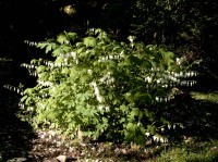| N eben dem Teilen von Stauden, das im späten Winter möglich ist, kann das Tränende Herz auch durch grundständige Stecklinge im Frühling vermehrt werden. Dicentra läßt sich auch aus Samen vermehren, gehört aber zu den Schwer- und Kaltkeimern. Wild aufgegangene Saat habe ich in den Jahren, in denen die Pflanzen hier stehen, noch nicht gesehen. Aber vielleicht habe ich auch einfach die Jungpflänzchen nicht erkannt. |