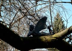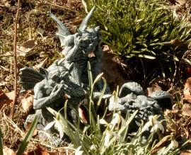 argoyles sind eine Sonderform der Elfen, sozusagen die "böse Verwandtschaft". Wobei "böse" keineswegs menschlich zu verstehen ist. Sie sind immer zu einem derben Scherz aufgelegt und manchem Menschen fehlt der nötige Humor, über diesen Klamauk einfach zu - lachen! Sie finden Ihr Gartenwerkzeug nicht wieder, ein Stein rollt urplötzlich vor Ihre Füße oder der natürliche Feind der Gargoyles, der Gartenzwerg, landet in einer Falle? Fragen Sie nicht, die Gargoyles geben nichts zu. Nichts hören, nichts sehen, nichts zugeben ist ihre Devise... Dieses Verhalten wurde im 13. Jahrhundert, dem Zeitalter der Gotik, mißgedeutet und die armen Wesen wurden als Zierrat für manche Dombauten, z.B. Notre Dame, benutzt. |