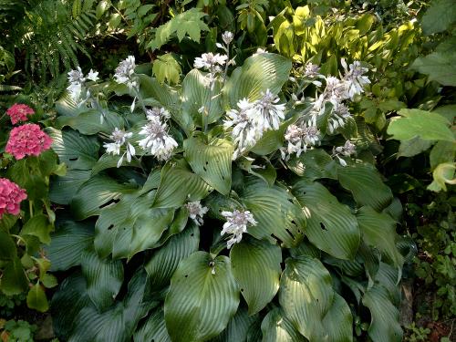 Umgebung ihre volle Pracht entfalten?! In jedem Garten gibt es diese Ecken und die Funkie oder Hosta (hier Funkie x tardiana) füllt diese Stellen aufs trefflichste aus. Vom Feng-Shui her ist die Funkie dem Element Wasser zugeordnet. Sie soll vermeiden, daß man sich zu sehr vereinnahmen läßt. |