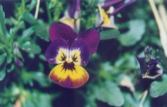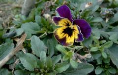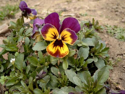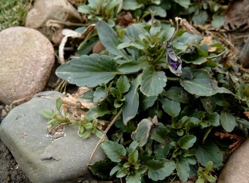 | V iola cornuta, das bescheidene Hornveilchen,nutzt hier und dort im Garten unauffällig eine Lücke, um monatelang still vor sich hin zu blühen. Und entgeht meiner Kamera auf diese Weise recht geschickt. |