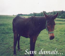 | E in ganz wichtiger Punkt ist natürlich auch noch die Tatsache, daß Pferde Herdentiere sind. Sie müssen sich also rechtzeitig nach einem Kumpel für Ihr Pferd umsehen. Wir stießen bei der Suche nach einem sogenannten "Beistellpferd" auf Sam, ein langohriges, ziemlich heruntergekommenes Maultier. Sein "Halter" kümmerte sich offensichtlich nicht sehr um sein Wohlergehen. Es war ein ziemlicher Nervenkrieg, bis Sam bei uns einziehen konnte, aber es hat sich eindeutig gelohnt. An dieser Stelle nochmals vielen Dank an Heike, Fritz und Udo für ihre Hilfe. Ohne euch und die fachkundige und nette Unterstützung der IG Esel- und Mulifreunde, besonders Fr.Bank-Lauer, wäre Sam wohl seit Jahren in der Wurst. |